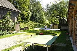 Im großen Garten ist ein Kinderspielplatz sowie Tischtennistisch, Tischfußball und ein Kamingrill mit überdachter windgeschützte Sitzgelegenheit für einen gemütlichen Grillabend.